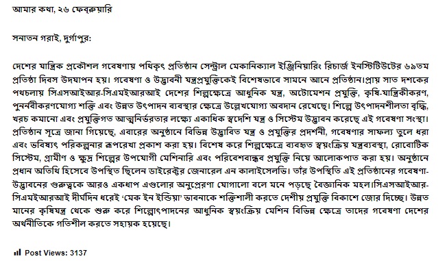 Dr. Naresh Chandra Murmu, FIE, FNAE, FNASc has taken over the charge of the Director, CSIR-CMERI, Durgapur. He assumed the office w.e.f. 6th February 2023. Read More...